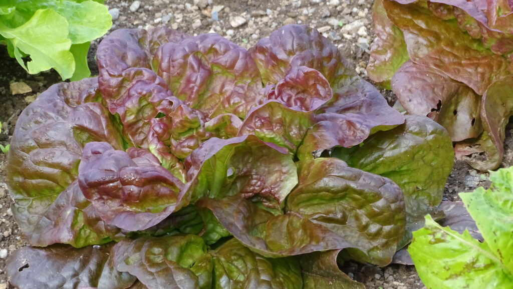 Salat muss regelmäßig gegossen oder gehackt werden („1x gehackt ist wie 3x gegossen“). Sonst werden die Blätter hart, die Pflanzen wachsen langsam und neigen dann zum Schießen. Wird der Salat fester und die Köpfe beginnen sich zu schließen, weniger und vorsichtiger gießen, und zwar möglichst nicht über die Köpfe, sondern direkt auf die Erdoberfläche.