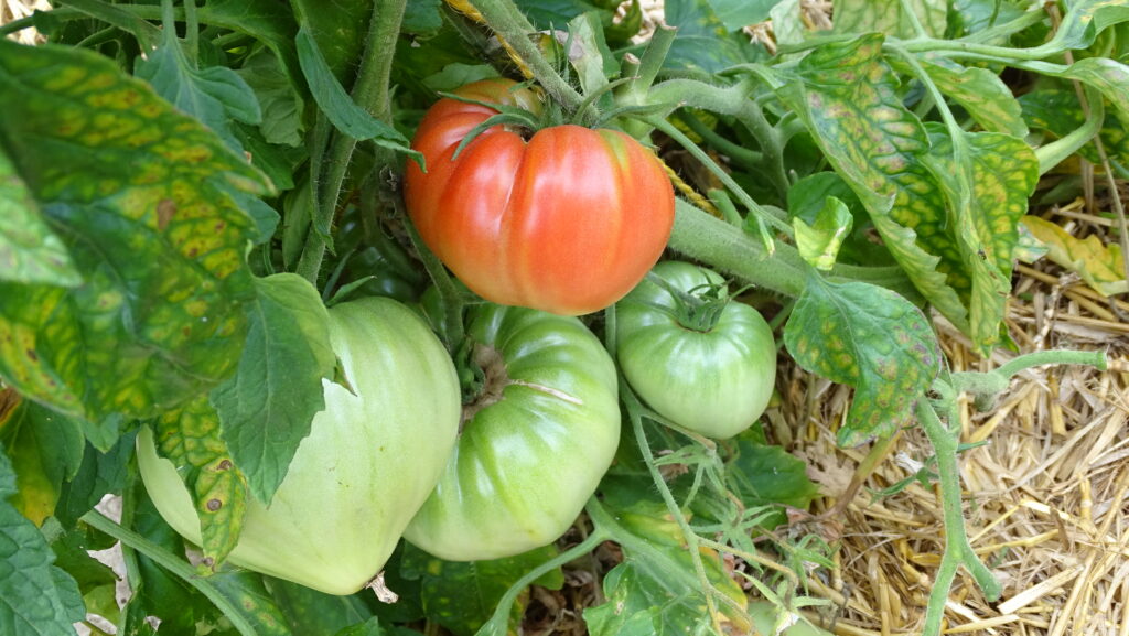 Vordem Auspflanzen können die Pflanzen draußen abgehärtet werden. Dazu stellt man sie ein paar Tage lang tagsüber nach draußen in den Schatten, sonst bekommen sie einen Sonnenbrand. Nach den Eisheiligen (Mitte Mai) können sie dann ausgepflanzt werden. Tomaten brauchen Stützen/Tomatenstäbe, an denen sie locker angebunden werden. Die meisten Sorten (außer Wild-und Cocktailtomaten, hier weniger streng vorgehen oder bei 1/1,5 m aufhören) müssen aus gegeizt werden, das heißt, Nebentriebe, die sich an den Blattachseln bilden werden regelmäßig raus gebrochen, damit die Pflanze ihre Kraft in die Früchte und nicht in die Triebe steckt. Tomaten sind anspruchsvoll und müssen gedüngt (z.B. Kompost) und täglich gegossen werden. Die Blätter vertragen keine Nässe.