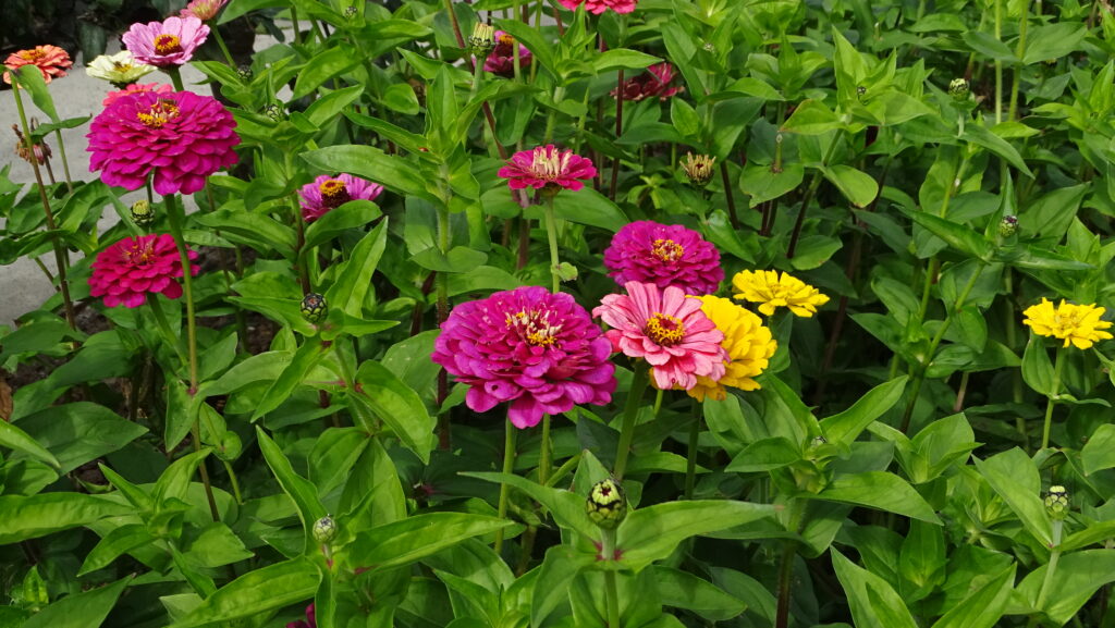 Die Zinnie ist meist eine einjährige Pflanze, es gibt aber auch mehrjährige Sorten. Sie ist eine wunderbare farbenprächtige Schnittblume mit einer Wuchshöhe von 20-30 cm. Die einjährigen Pflanzen sollen jedes Jahr an einem andern Ort gepflanzt werde. Blüten, die verblüht regelmäßig entfernt, dann bleibt die Blühfreudigkeit erhalten. Zinnien freuen sich über einen vollsonnigen, warmen Standort auf möglichst durchlässigen Böden. Ein von Steinen durchsetzter, lehmiger humusarmer Untergrund wäre optimal. Regelmäßig etwa alle zwei Wochen sollte die Zinnie neue Nährstoffe erhalten.Sie benötigt regelmäßig Wasser und muss feucht gehalten werden, es sollte aber Staunässe vermieden werden.